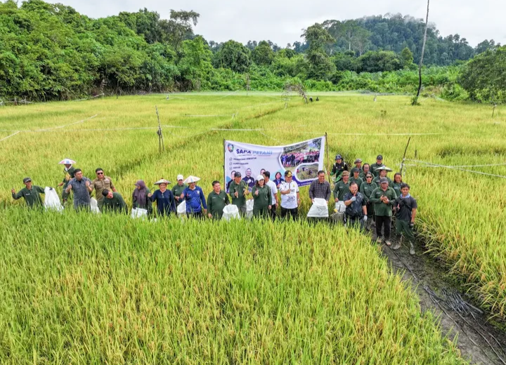 Malinau, – Pemerintah Kabupaten Malinau terus meningkatkan upayanya untuk memperkuat sektor pertanian yang berorientasi pada kemandirian pangan dan kesehatan masyarakat desa. Sekretaris Daerah Kabupaten Malinau Dr. Ernes Silvanus, S.Pi.,MM.,MH hadir secara langsung pada kegiatan Sapa Tani dan Satgas Petani Sehat Kecamatan Mentarang yang bertempat di lahan pertanian Desa Lindung Kemenci Seberang, Rabu (12/11/2025) pagi.