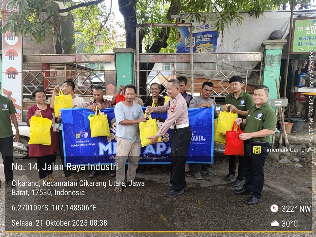 Borneoindotimes.com Kab Bekasi – Samsat Kabupaten Bekasi dibawah pimpinan Kanit AKP Yuli Wrestiyarini,S.E melaksanakan kegiatan Polantas Menyapa, pada hari Selasa 21 Oktober 2025. Adapun jenis kegiatan Polantas Menyapa ini adalah pembagian paket sembako kepada warga masyarakat menengah ke bawah dan para ojek pangkalan di wilayah Kampung Jati, Kecamatan Cikarang Utara, Kabupaten Bekasi. Kegiatan ini mendapatkan…